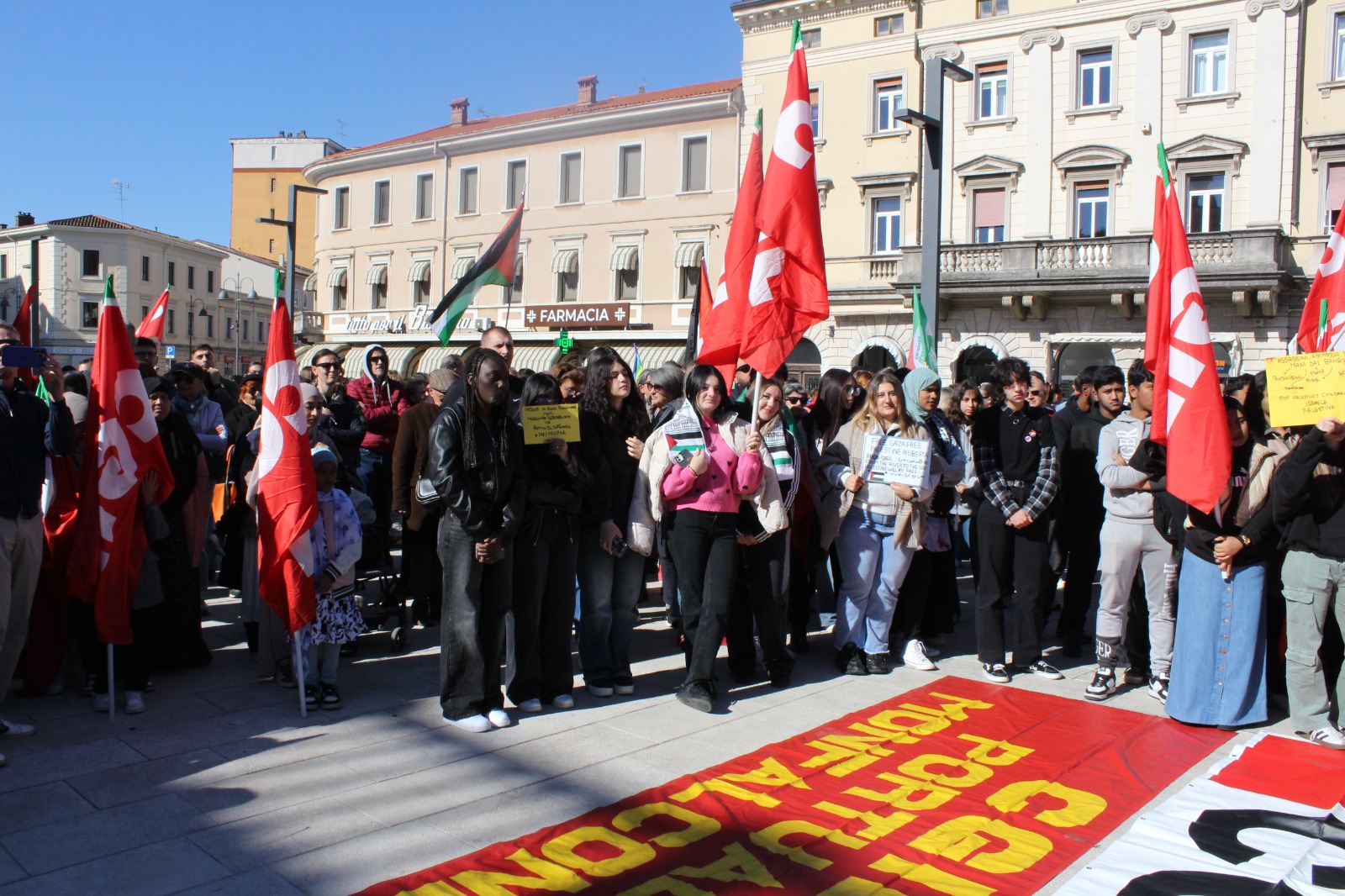 In linea con quanto sta accadendo in queste ore in tutto il Paese, le manifestazioni ProPal continuano anche a livello locale. Dopo il corteo di ieri sera a Gorizia, stamane, venerdì 3 ottobre, a Monfalcone in Piazza della Repubblica, si sono riunite circa 500 persone per prendere parte al presidio “La Flotilla è stata fermata. Blocchiamo tutto!” organizzato da CGIL e Coordinamento di Solidarietà alla Sumud Flotilla.