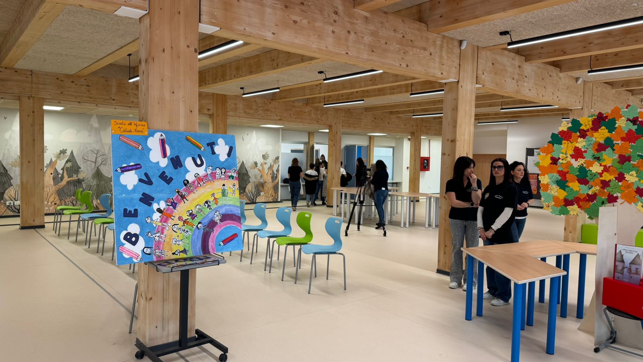 La struttura in legno da 2mila metri quadrati, certificata in classe energetica A3 e dotata di impianti fotovoltaici, mette a disposizione della comunità 14 aule e moderni spazi comuni.