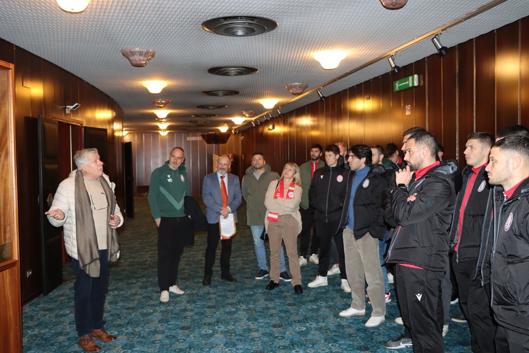 Il presidente del Kulturni dom, Igor Komel, ha illustrato la missione dell’istituzione e il suo ruolo di ponte culturale tra Sloveni, Italiani e Friulani. Ha inoltre ripercorso la ricca storia dello sport sloveno a Gorizia, presentando anche l’antico vessillo dei Sokol. Komel ha sottolineato che i calciatori non sono soltanto atleti, ma anche importanti modelli per le giovani generazioni. La Juventina conta infatti più di cento giovani giocatori, un patrimonio prezioso che va valorizzato e accompagnato con attenzione per il futuro.