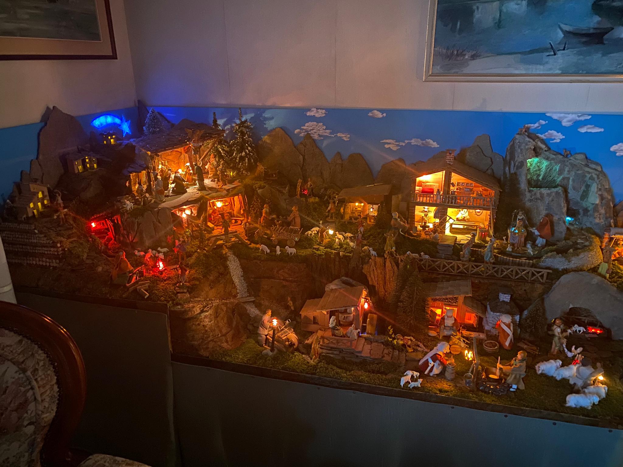 Dalla nuova capanna fino alle piccole casette, dagli angioletti ai vari mestieri scelti con cura – pescatore, panettiere, pastore e anche l’orante – è sicuramente una creazione che fa compagnia, sia di giorno che di notte, vista la presenza di lampadine a illuminare l’intera scena. Non manca, infine, l’accampamento romano. Da due anni mancano pezzi nuovi – e, va detto, già mantenere una struttura simile non è semplice – ma non è detto non ne possano arrivare con il Natale 2023.