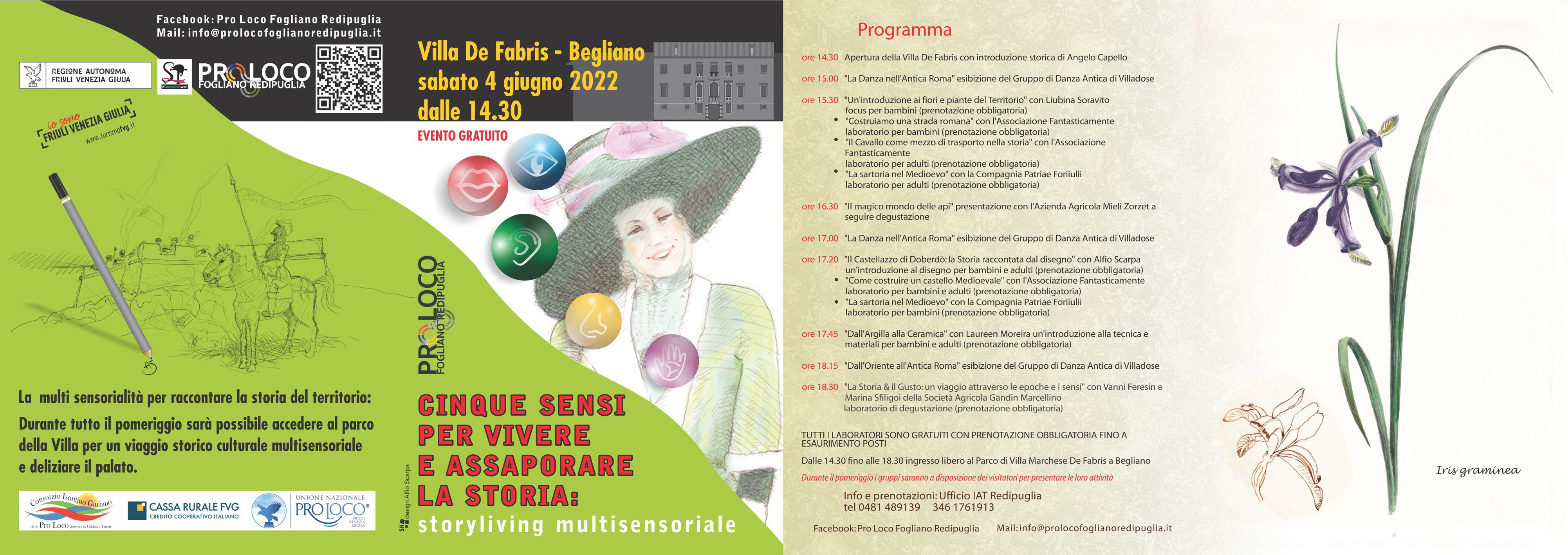 Nuovo appuntamento con il filone progettuale #Storytellersww1, ideato e portato avanti da ormai sette anni dalla Pro Loco Fogliano Redipuglia. Il sodalizio, in questo caso, si muoverà a Begliano, in Villa de Fabris, con un pomeriggio davvero particolare. Sabato 4 giugno, con inizio alle 14.30 e fino a sera, il ricco calendario di laboratori e conferenze porterà i presenti a sperimentare la storia e il territorio con tutti e cinque i sensi.