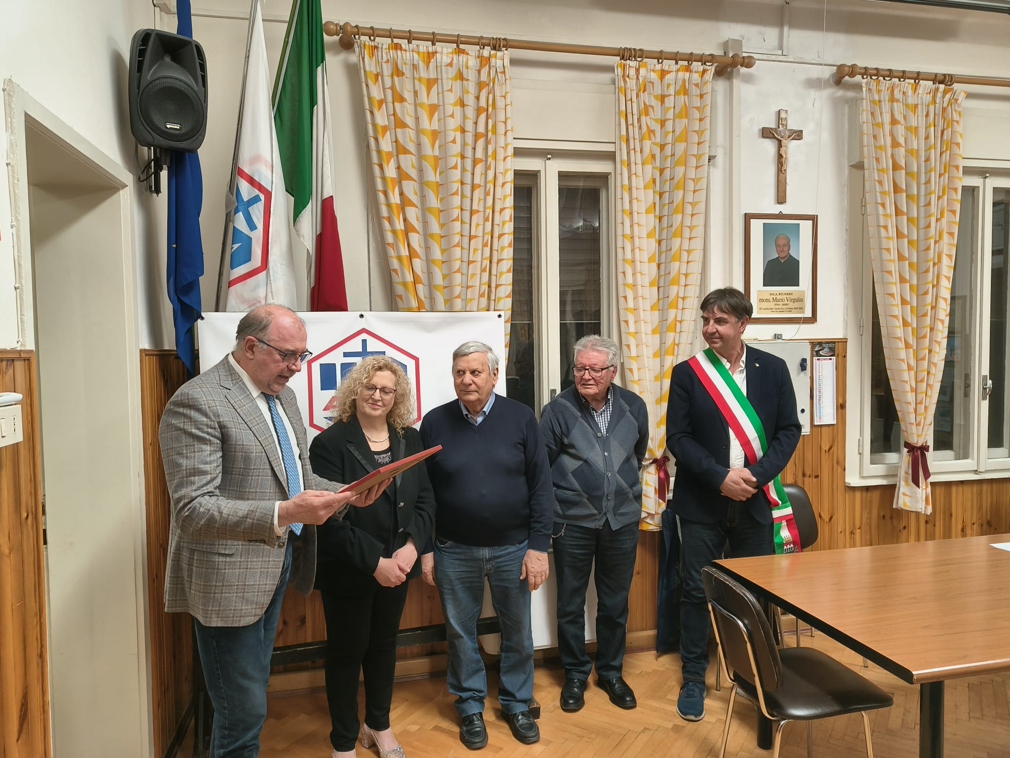 La cerimonia ha avuto luogo nella sala "Monsignor Virgulin" del Circolo Aclista "Beato Giuseppe Toniolo" dopo la Santa Messa celebrata nella Chiesa Arcipretale Decanale di San Lorenzo. Il rito è stato officiato dal parroco monsignor Ignazio Sudoso e concelebrato dal vicario don Luigi Fontanot. «Il mondo del lavoro è per Giuseppe il luogo dove riscopre se stesso e, come nel sogno vissuto, sente la voce di Dio che gli dice di non avere timore - sono le parole del sacerdote - l' intuizione di Giuseppe non nasce da qualcosa di programmato ma da ciò che proviene dalla parte ancestrale insita nell'uomo. Non temere, poi dare concretezza al sogno. San Giuseppe artigiano dà vita alla concretezza. Ha un atteggiamento di cura, prende a cuore la vita di Maria. Dà concretezza a quanto ha compreso durante il sogno ascoltando l' Angelo». E ancora il parroco: «Prende la sua Parola come vera che non è un rigurgito di idee strampalate. Giuseppe porta a compimento la fedeltà nell'amore di Maria. Due sono gli elementi fondamentali: relazione d'amore e sogno che permette di rimanere coerente oltre gli ostacoli e le difficoltà». «Giuseppe e Maria danno concretezza alla vita di Gesù - conclude monsignor Sudoso - come il Santo, anche gli artigiani di oggi devono essere capaci di ascoltare e di portare avanti i propri progetti e Carmen ne è un esempio».