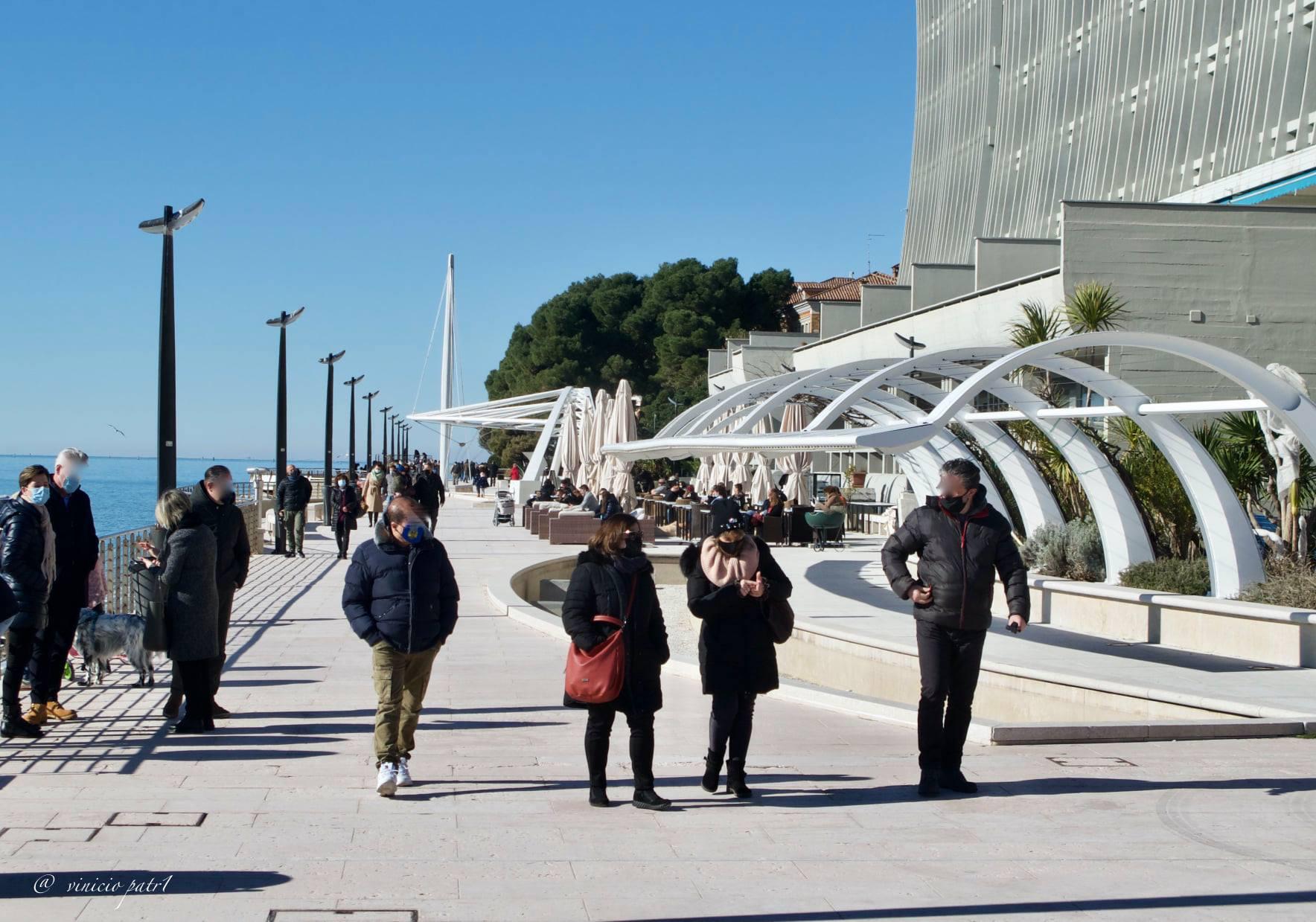 Sole, poco vento e zona gialla: in migliaia a Grado nel giorno di San Valentino