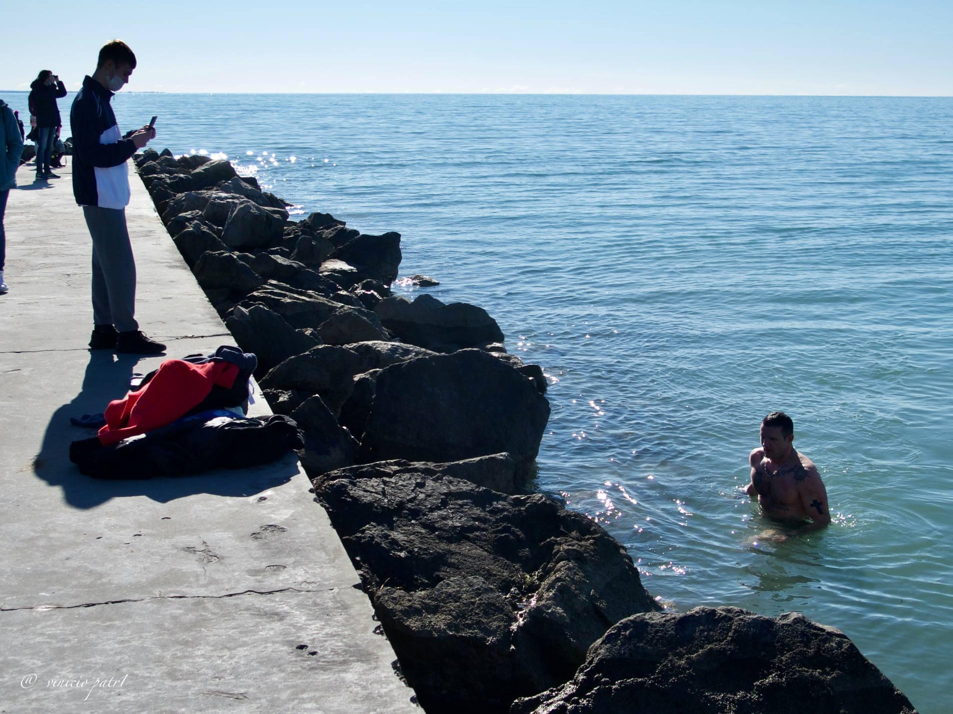 In ogni caso domenica partecipata, come detto, e c'è chi, attorno alle 11, ha deciso di festeggiare con un tuffo di fronte al condominio Zipser, affrontando un mare che, secondo le stime di alcuni presenti, misurava circa 8 gradi.