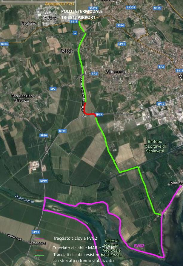 Con i finanziamenti europei ottenuti con il progetto Mar e Tiaris verrà realizzata a Staranzano una nuova pista ciclabile di collegamento tra il tracciato ciclabile che attualmente porta alla stazione Trieste Airport e la ciclabile FVG2 lungo il litorale, nonché alcuni punti sosta panoramici lungo la fascia costiera fino alla località Marinetta.