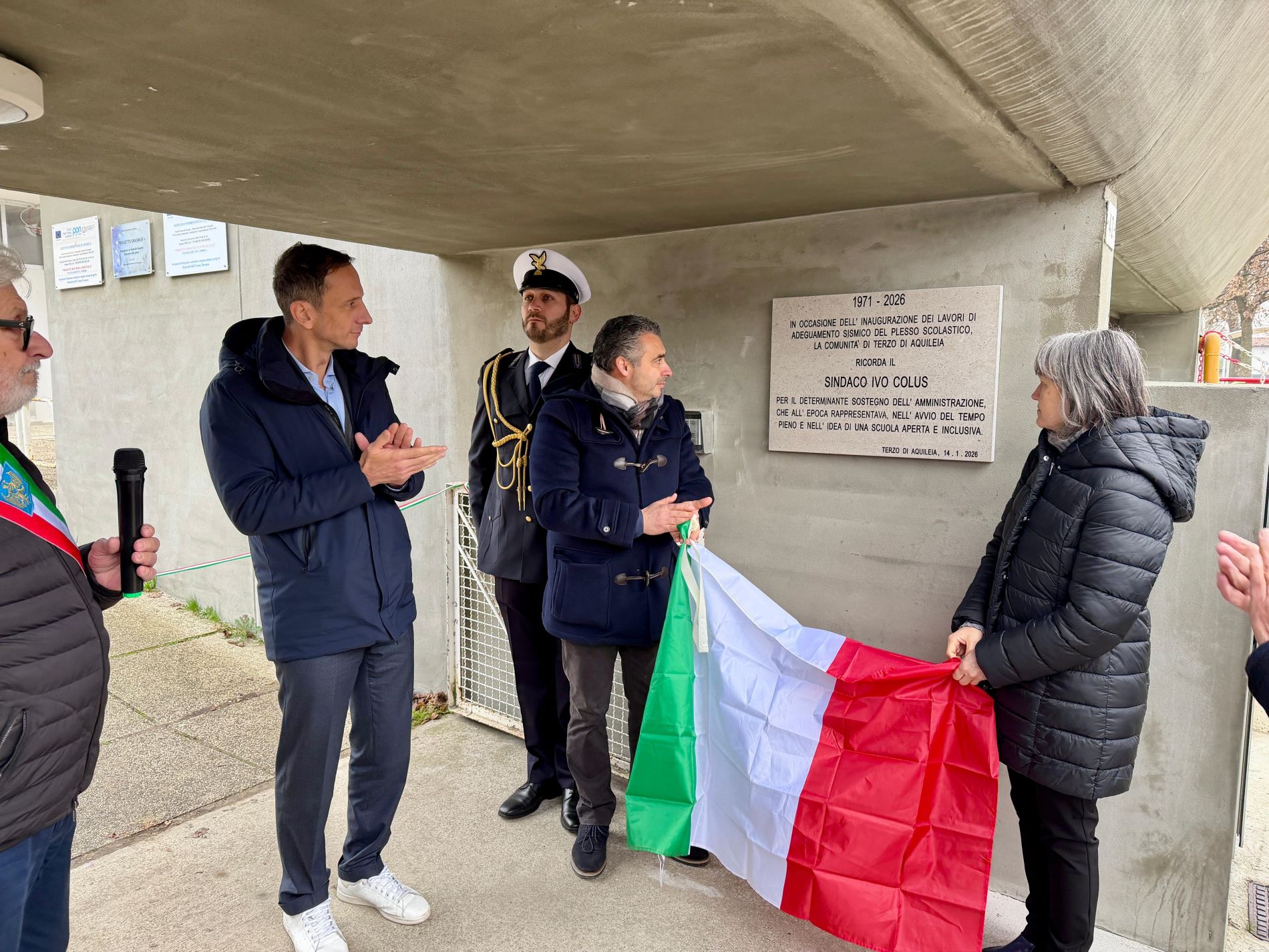 Ad aprire la cerimonia è stato il sindaco Quaini che, alla presenza del governatore Fedriga, ha scoperto la targa dedicata a Ivo Colus, già primo cittadino, che nel 1971 avviò a Terzo di Aquileia la scuola a tempo pieno, una delle prime cinque in regione.