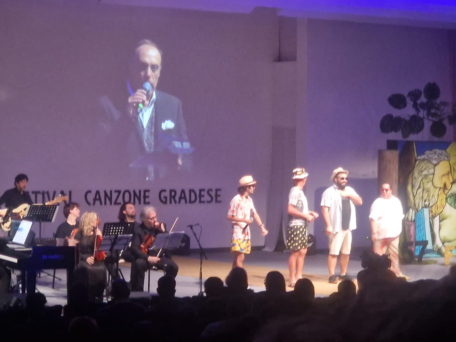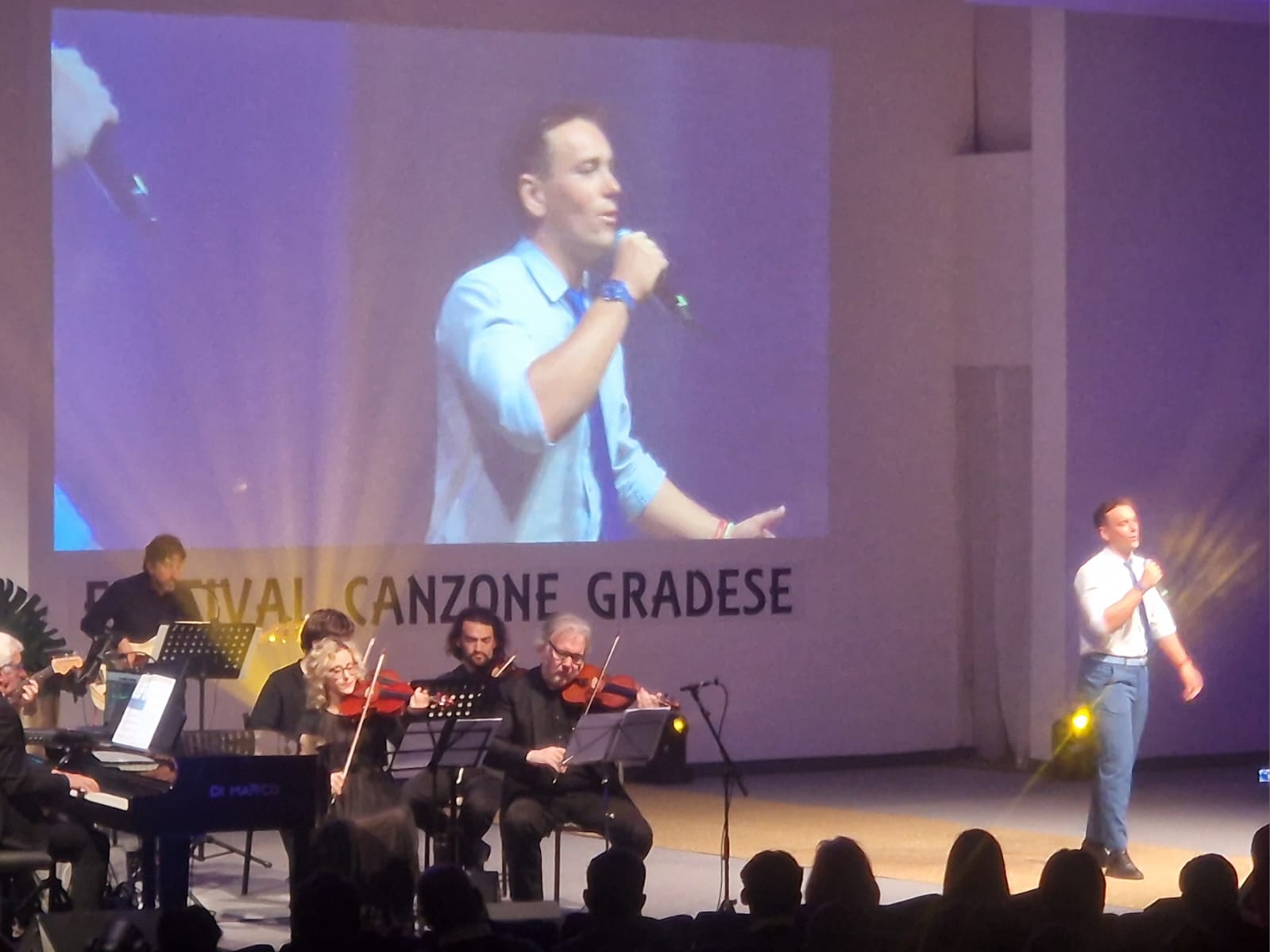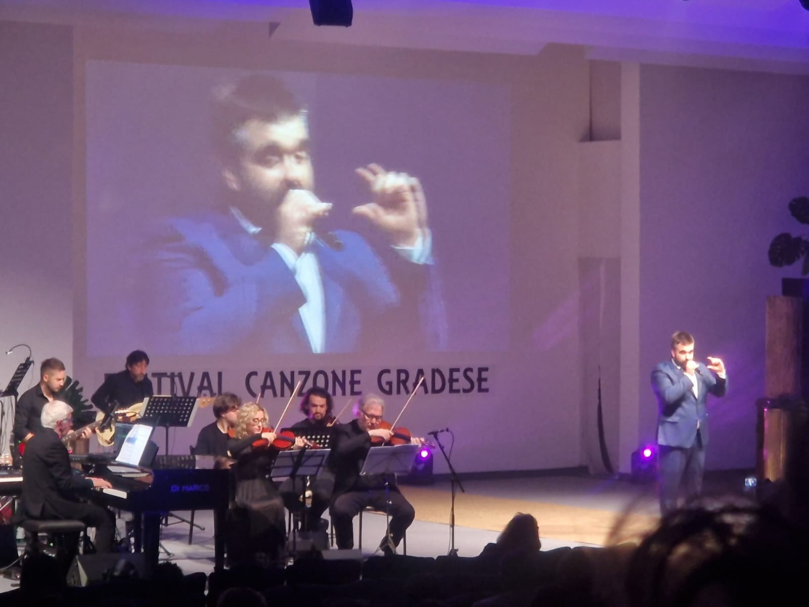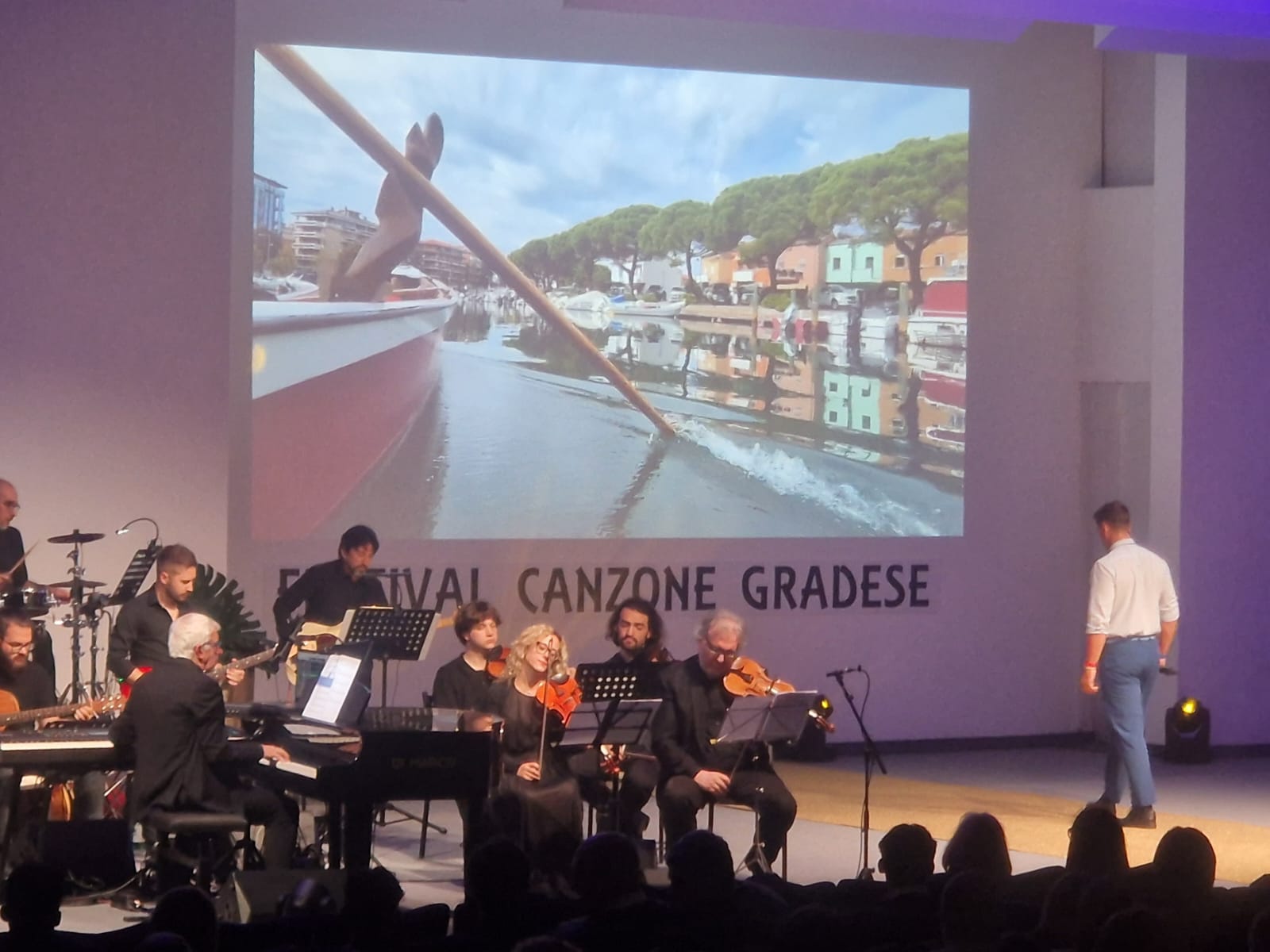 Tra gli ospiti presenti al festival l’abilissimo Simone Zentilin, partito sui transatlantici che traversano gli oceani, dando spettacolo in ben 325 concerti di fronte a oltre 360mila persone. Zentilin si è esibito con grande passione intonando brani quali “La voce del silenzio”, “Crazy little thing called love” o la celebre “Volare”. Non è mancato un saluto dagli States con il messaggio registrato di Filippo Lugnan dall’iconica UCLA - Università della California di Los Angeles - dove il gradese ha suonato al pianoforte di Frank Sinatra. «Il festival vive attraverso queste storie – sottolinea – peculiari a una cultura legata alla parlata e alle qualità artistiche degli isolani». Ricco d’immagini il libretto di sala, quest’anno dedicato alle opere del grande artista gradese Aldo Marocco, scomparso in una sera di marzo del 2018 lasciando la città sgomenta. «Finché avremo il sostegno di quanti scrivono le canzoni – evidenzia il presidente del festival Fabio Marchesini – cercheremo di proseguire il nostro cammino». A ricordare le parole di don Luigi Pontel è stato invece il primo cittadino Giuseppe Corbatto, che ha ribadito l’importanza di «conservare rinnovando e rinnovare conservando». Mentre don Paolo Nutarelli ha voluto ringraziare coloro che «prestano il loro tempo per lasciare una traccia negli altri».