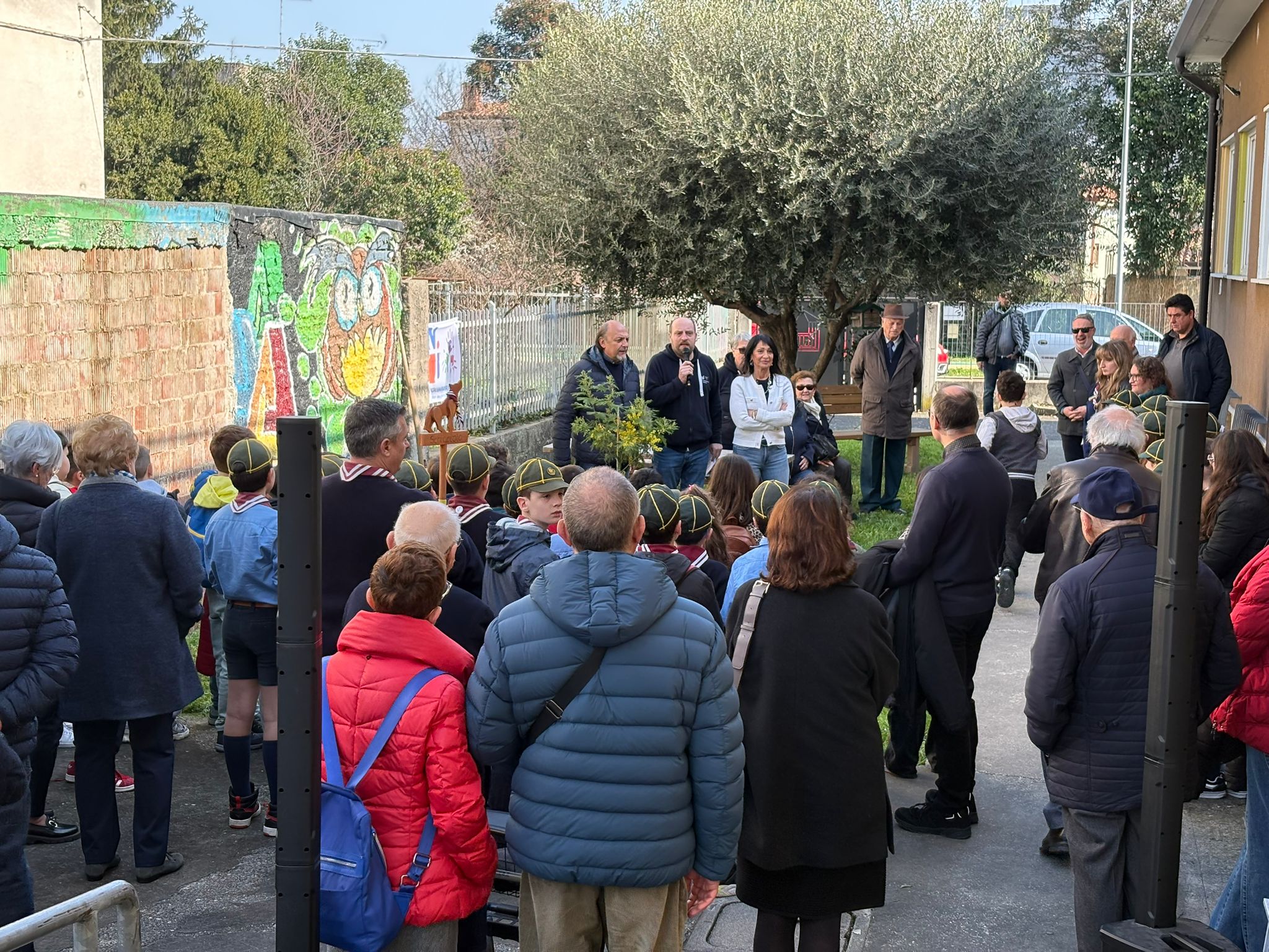La cerimonia si è svolta nel giardino dell'Oratorio Foschian alla presenza di famiglie, bambini e autorità locali con un momento di riflessione e di festa.